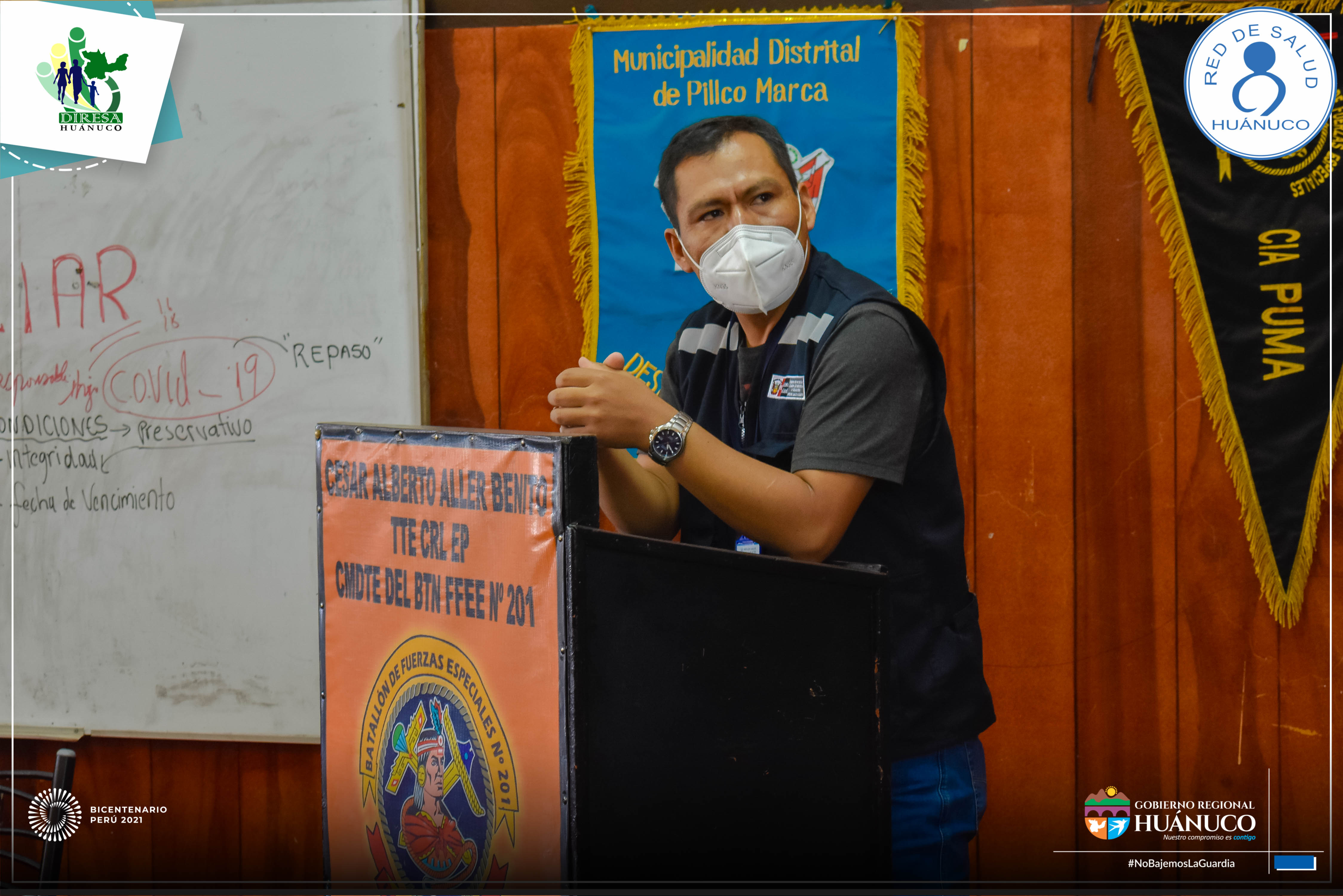 En la capacitación también se contó con la participación del director ejecutivo de la Red de Salud Huánuco, Méd. Alejandro Vicente Quispe y el Teniente Coronel EP César Alberto Aller Benito, quienes dieron realce a este importante evento.