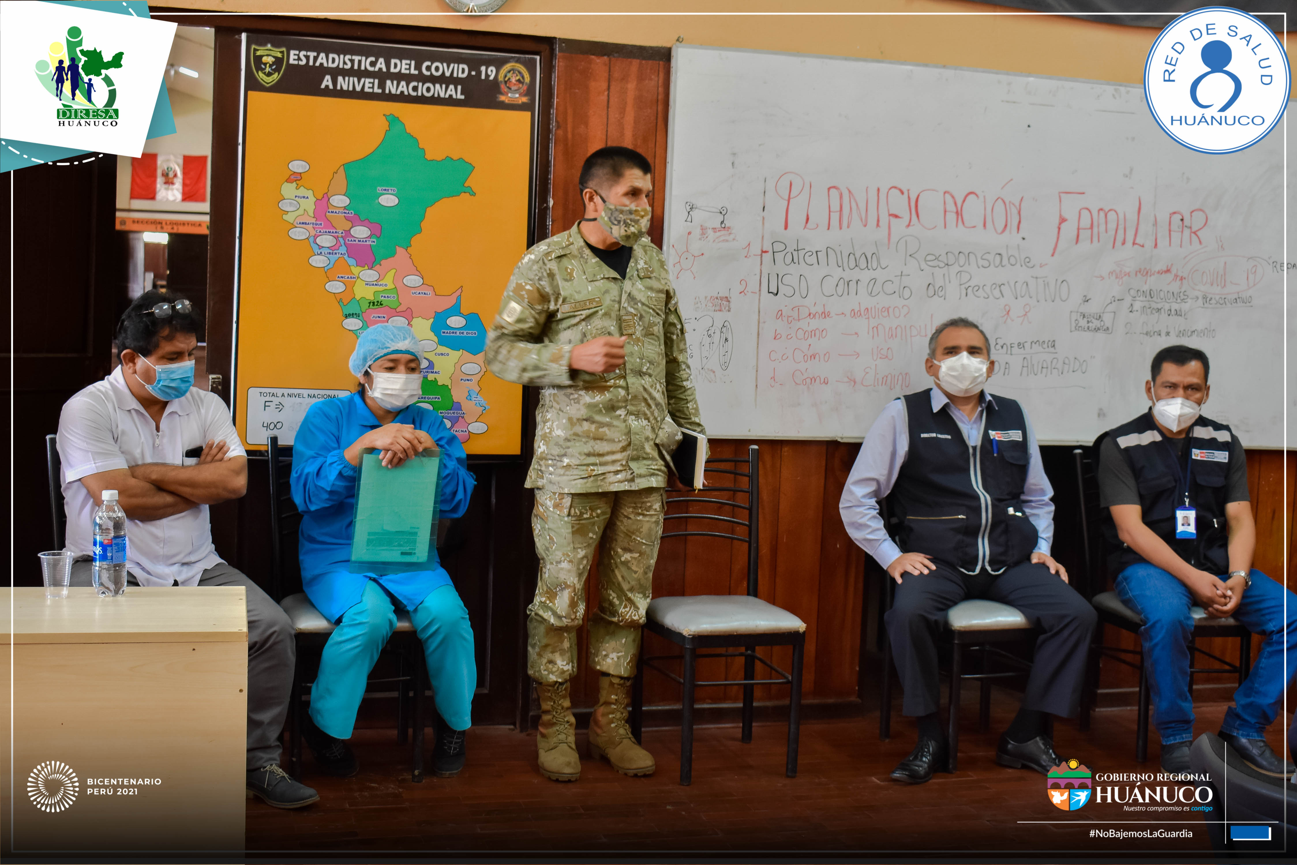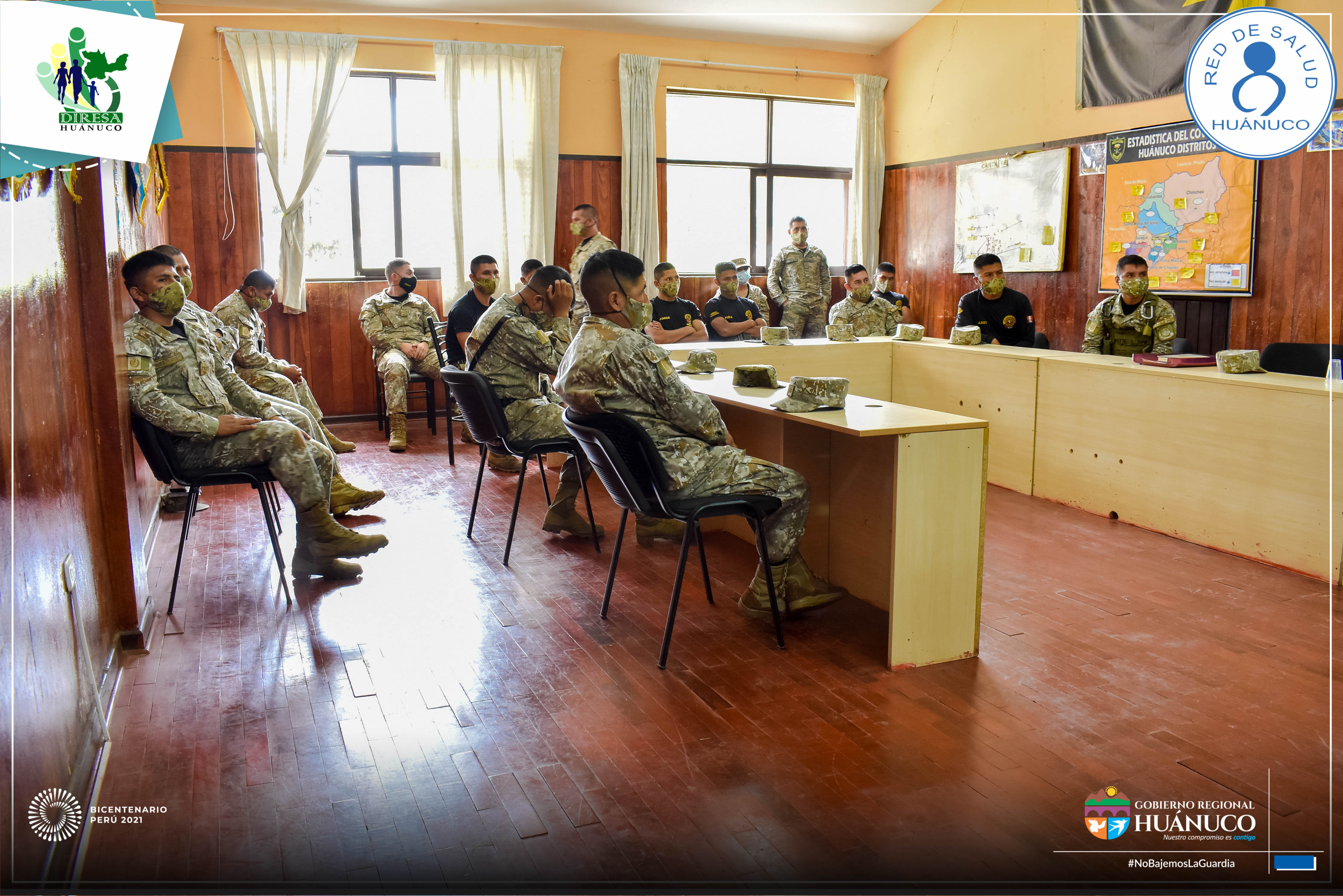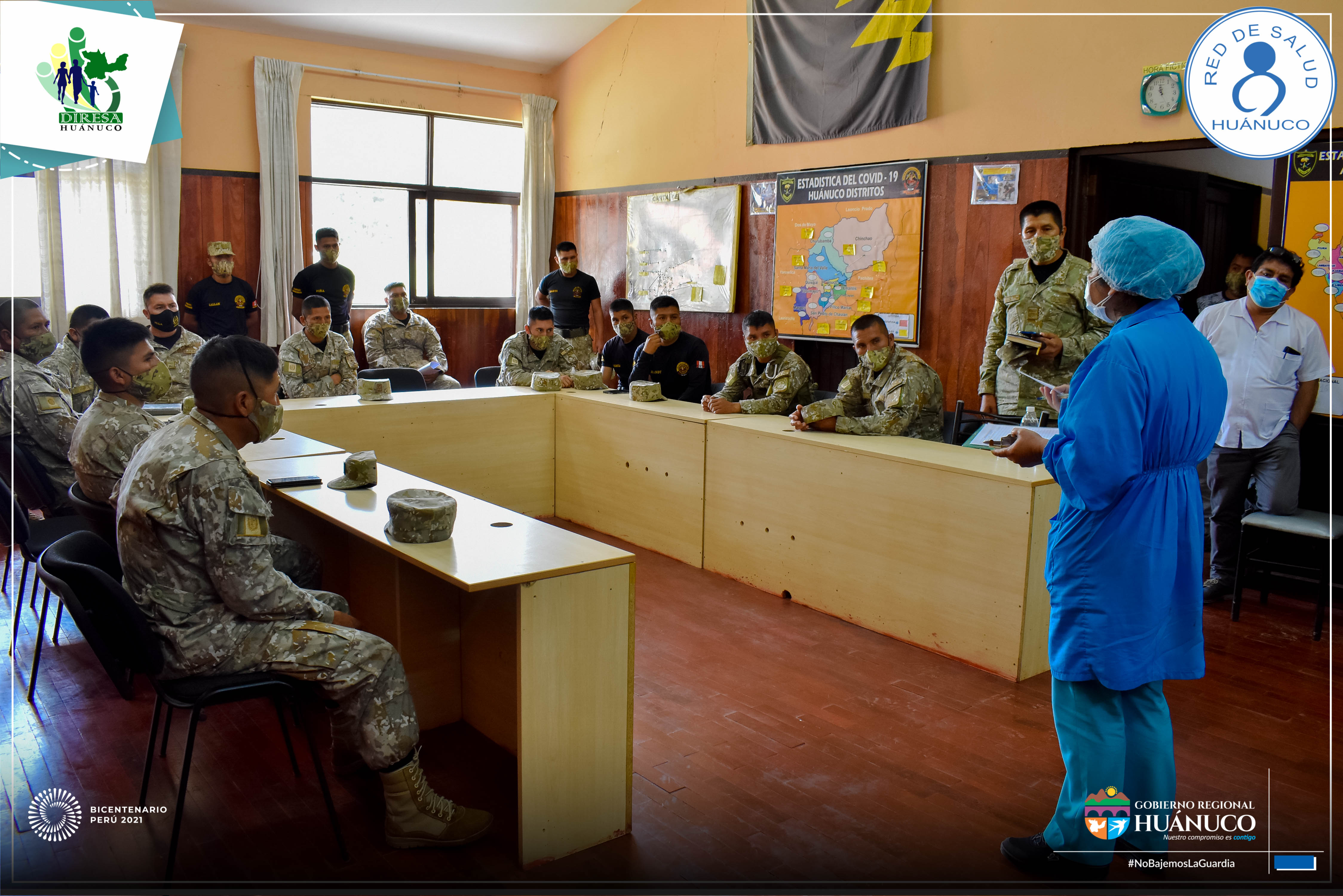 El responsable de Inmunizaciones de la Red de Salud Huánuco, Lic. Pedro Albornoz Mallqui, capacitó a los miembros del ejército acantonados en el cuartel de Yanag, quienes apoyarán durante las jornadas de vacunación contra la Covid-19 desde la segunda fase.