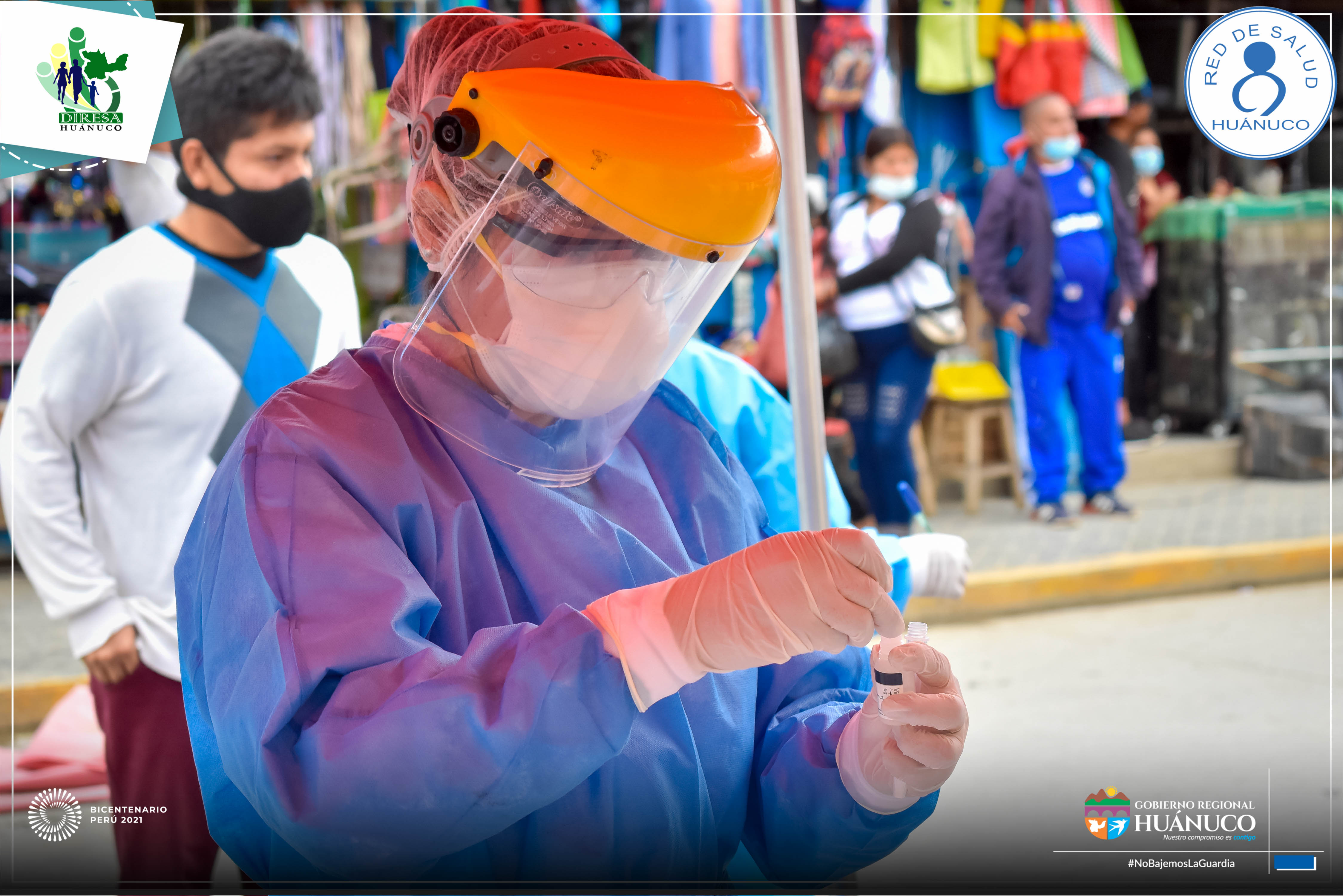 Los equipos de intervención integral de la Red de Salud Huánuco continúan realizando campañas de detección de portadores de la Covid-19, hoy llegaron hasta el mercado antiguo de Huánuco.