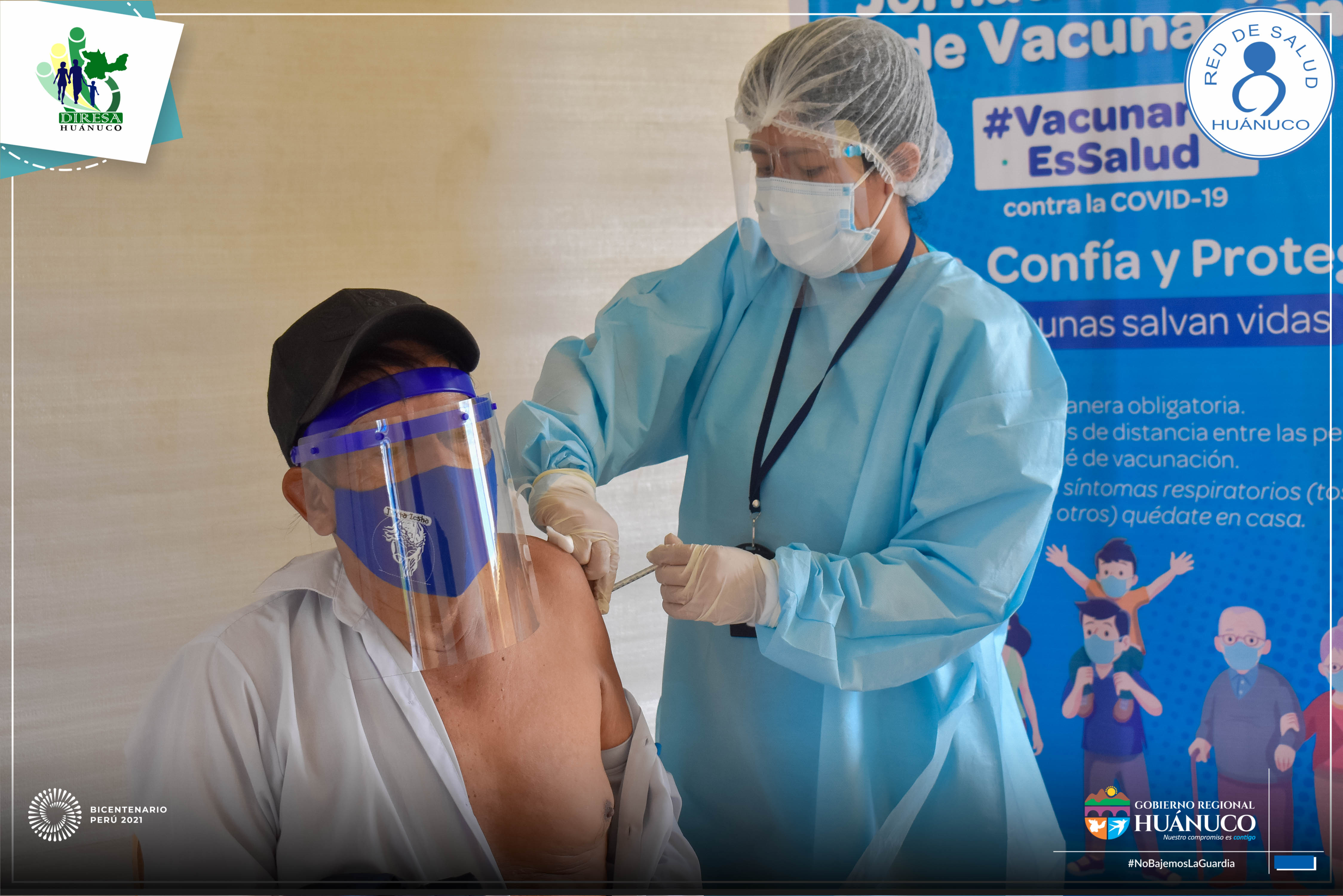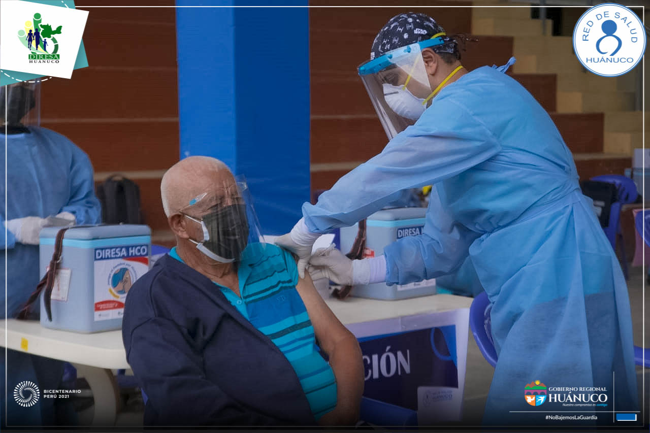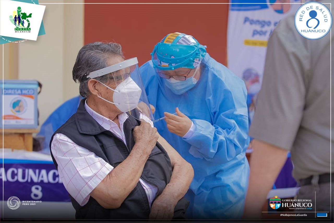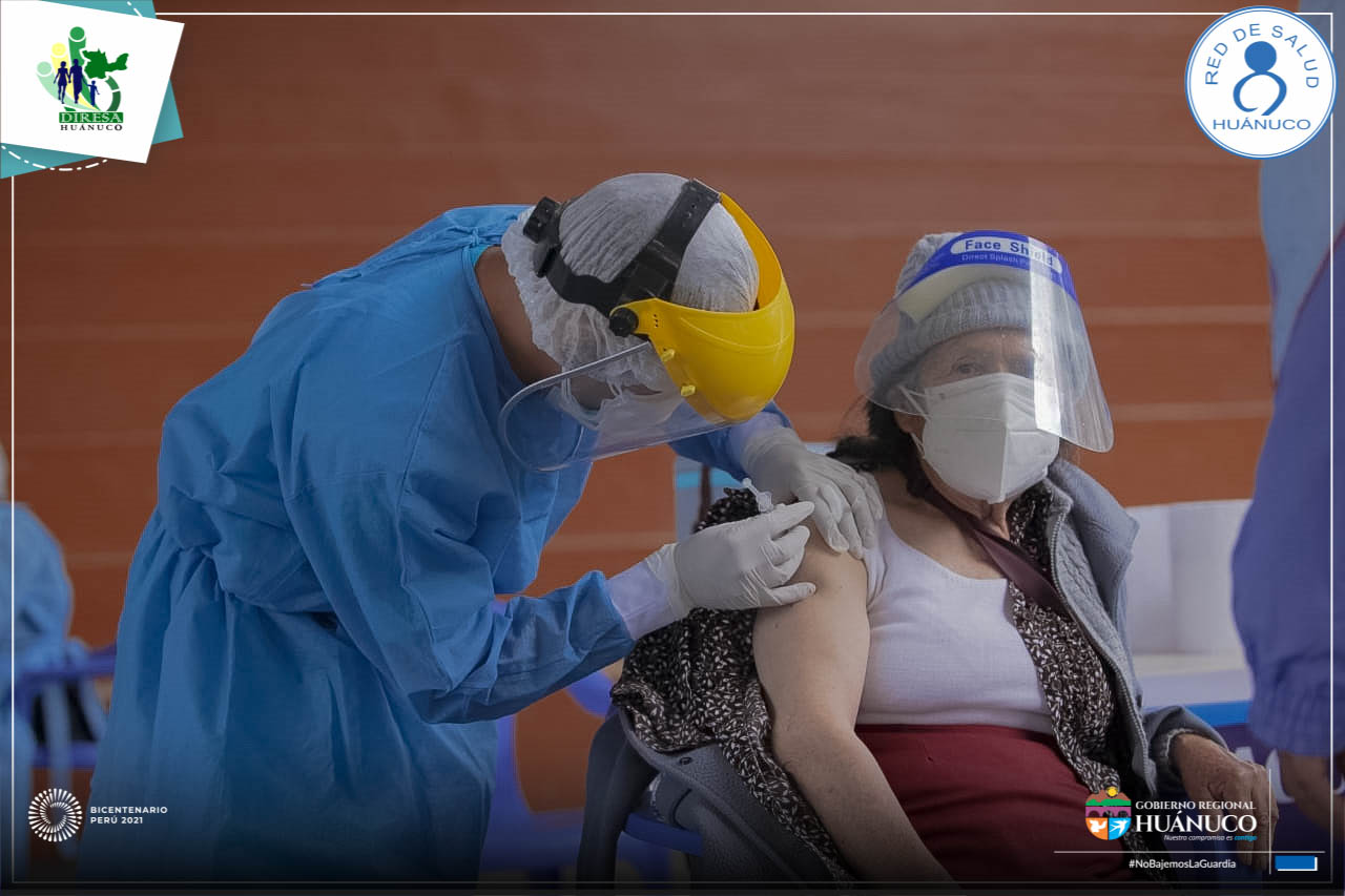 Cumpliendo con los protocolos de bioseguridad se dio inicio a la jornada de vacunación contra la Covid-19 dirigido a los adultos mayores de 80 años de la provincia de Huánuco.