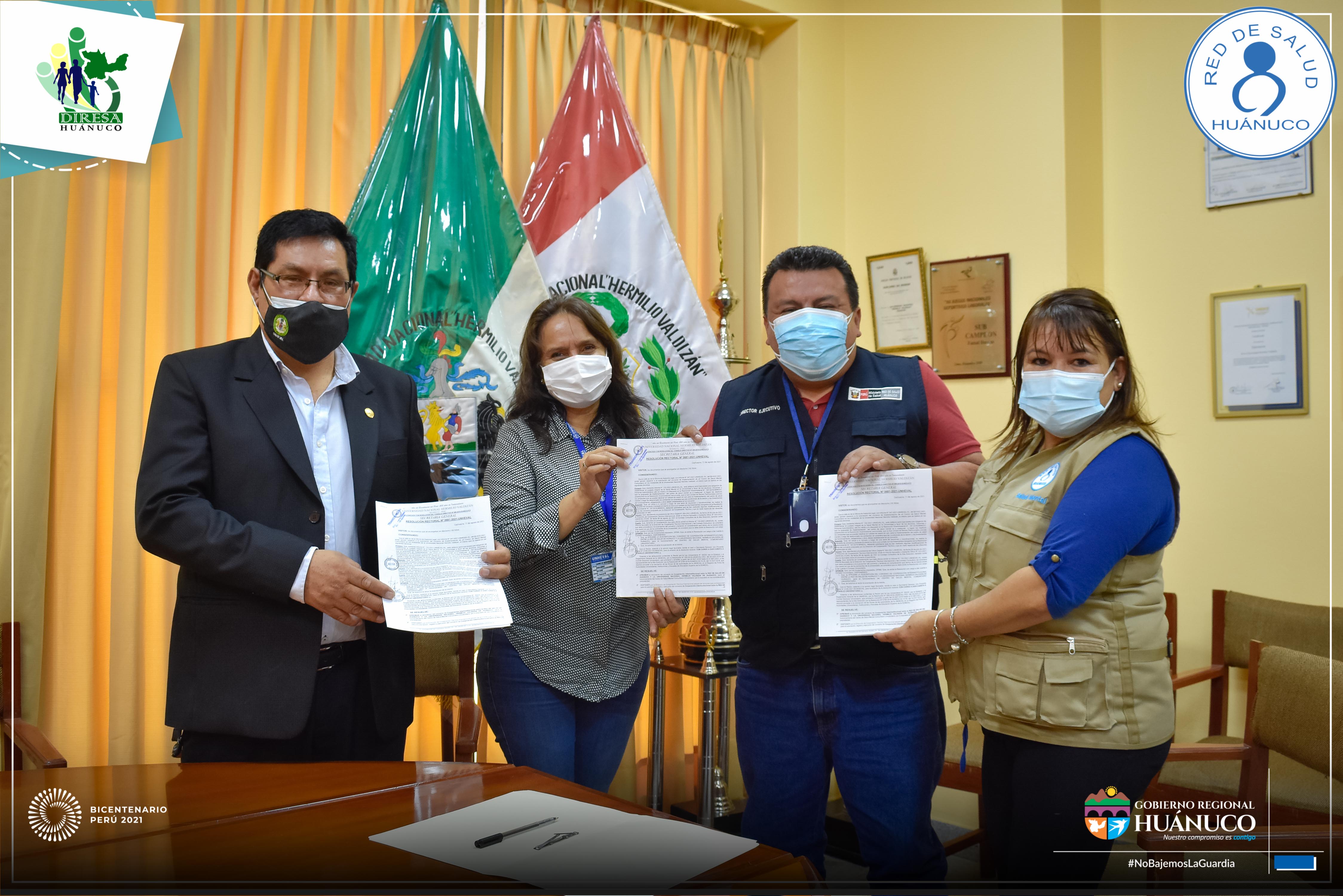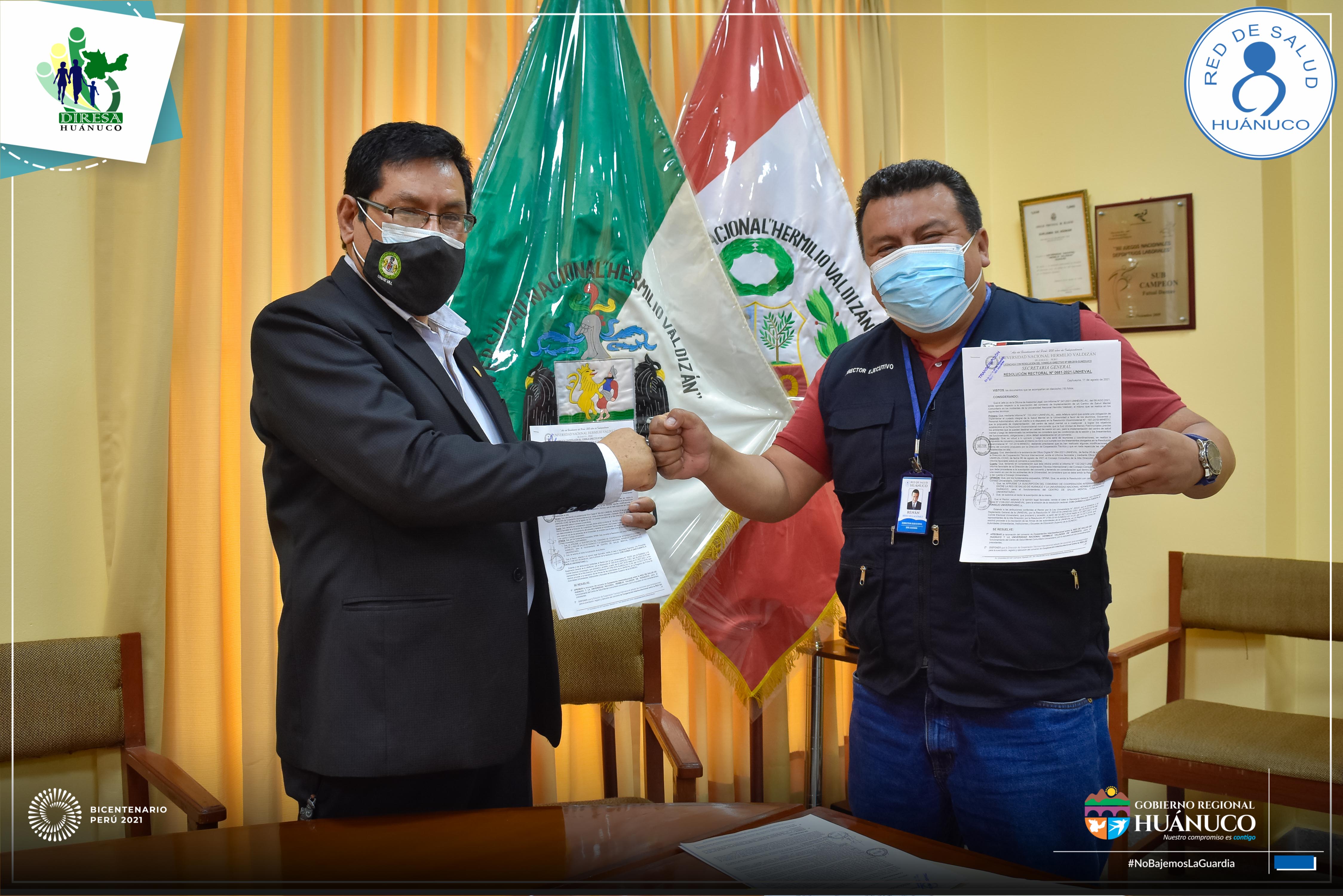El convenio fue firmado por el director ejecutivo de la Red de Salud Huánuco, Méd. Renán Ríos Villagómez y el rector de la Universidad Nacional Hermilio Valdizán, Dr. Reynaldo Ostos Miraval, donde se asigna un espacio de 10 ambientes (cuna universitaria) para el funcionamiento del Centro de Salud Mental Comunitario Universitario, ubicado en la ciudad universitaria.