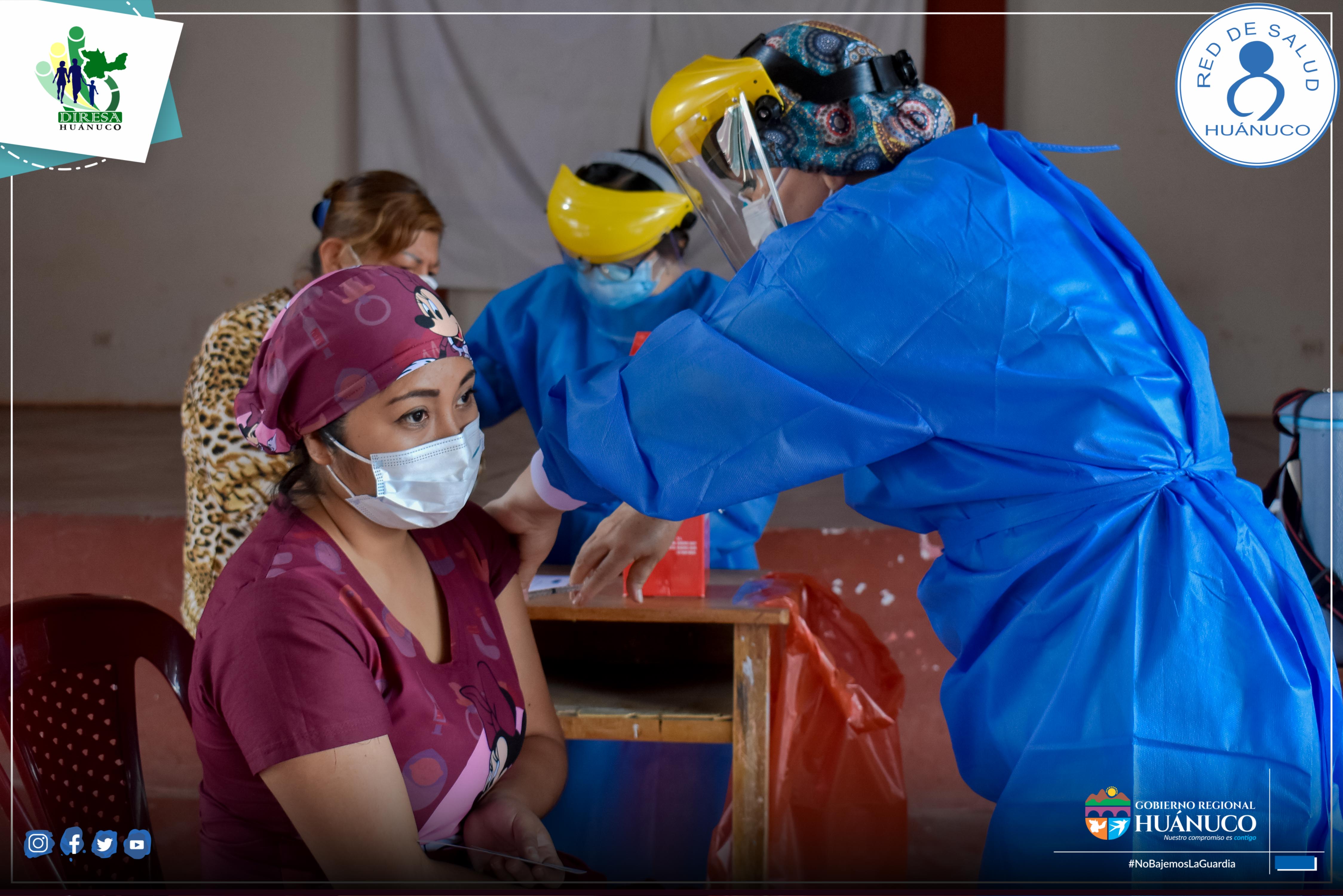 Con esta jornada el director ejecutivo de la Red de Salud Huánuco, Méd. Alejandro Vicente Quispe cumple con lo dispuesto para esta primera etapa de vacunación donde se prioriza al personal del Centro de Salud Perú Corea y del hospital materno infantil Carlos Showing Ferrari.